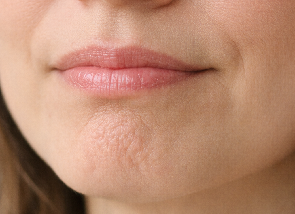 口を閉じたときに出やすかった、あごの梅干しみたいなゴツゴツ感です。