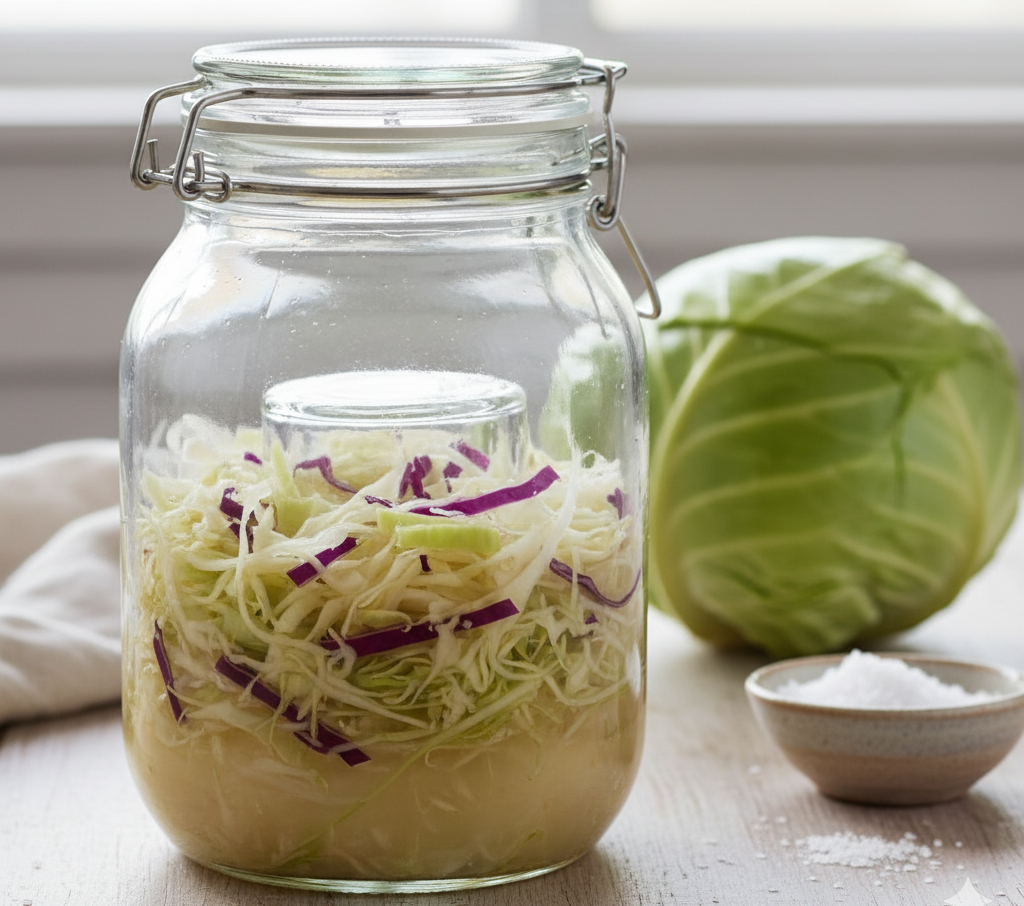 発酵することで乳酸菌が増え、生のキャベツよりも胃への負担が少なくなります。ほんのりした酸味が食欲を刺激してくれるので、胃が疲れているときでも食べやすいのがうれしいところ。実は、キャベツには「キャベジン」という成分が含まれていて、これは胃の粘膜を守ったり、修復を助けてくれる働きがあります。あの有名な胃薬「キャベジン」も、キャベツの成分から名前がつけられているほどなんです。そんなキャベツを発酵させると、乳酸菌の力も加わって、さらに胃腸を整えるサポートに。シャキシャキとした食感も食べ応えがあって、食事の満足感をしっかり感じられます。 - 栄養・健康効果: