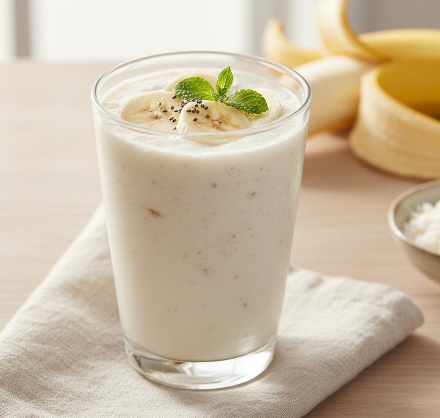 シナモンやココアパウダーを少量加えると風味がアップ。冷たいスムージーが胃に刺激になる場合は、常温に近い甘酒を使うと安心です。