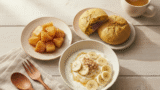 朝ごはんには、オートミールを豆乳でふんわり煮るのが最近のお気に入りです。オートミールは水分を吸いやすく、豆乳と合わせるとやさしい口当たりに仕上がります。そこにバナナを加えると、自然な甘みが広がって、胃にもとても優しいんです。食物繊維もしっかり取れるので、朝から無理なくお腹を整えたいときにぴったりです。 - 栄養・健康効果: